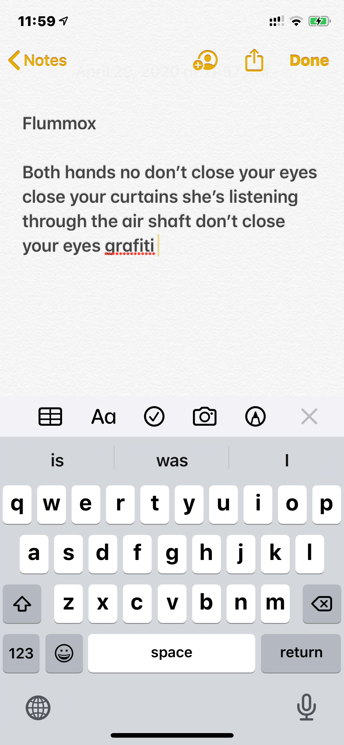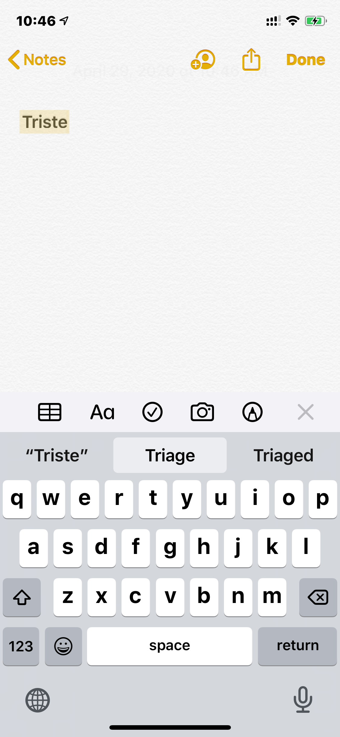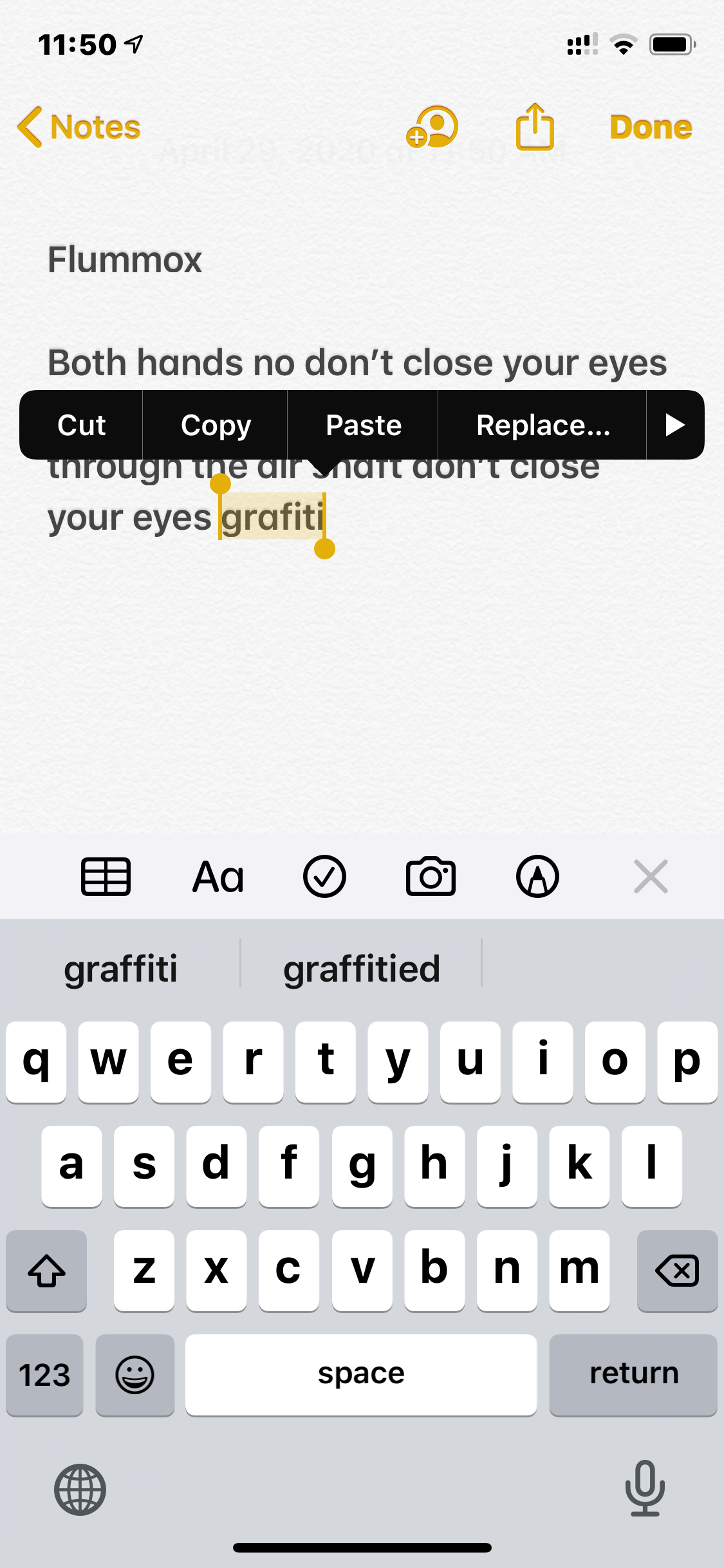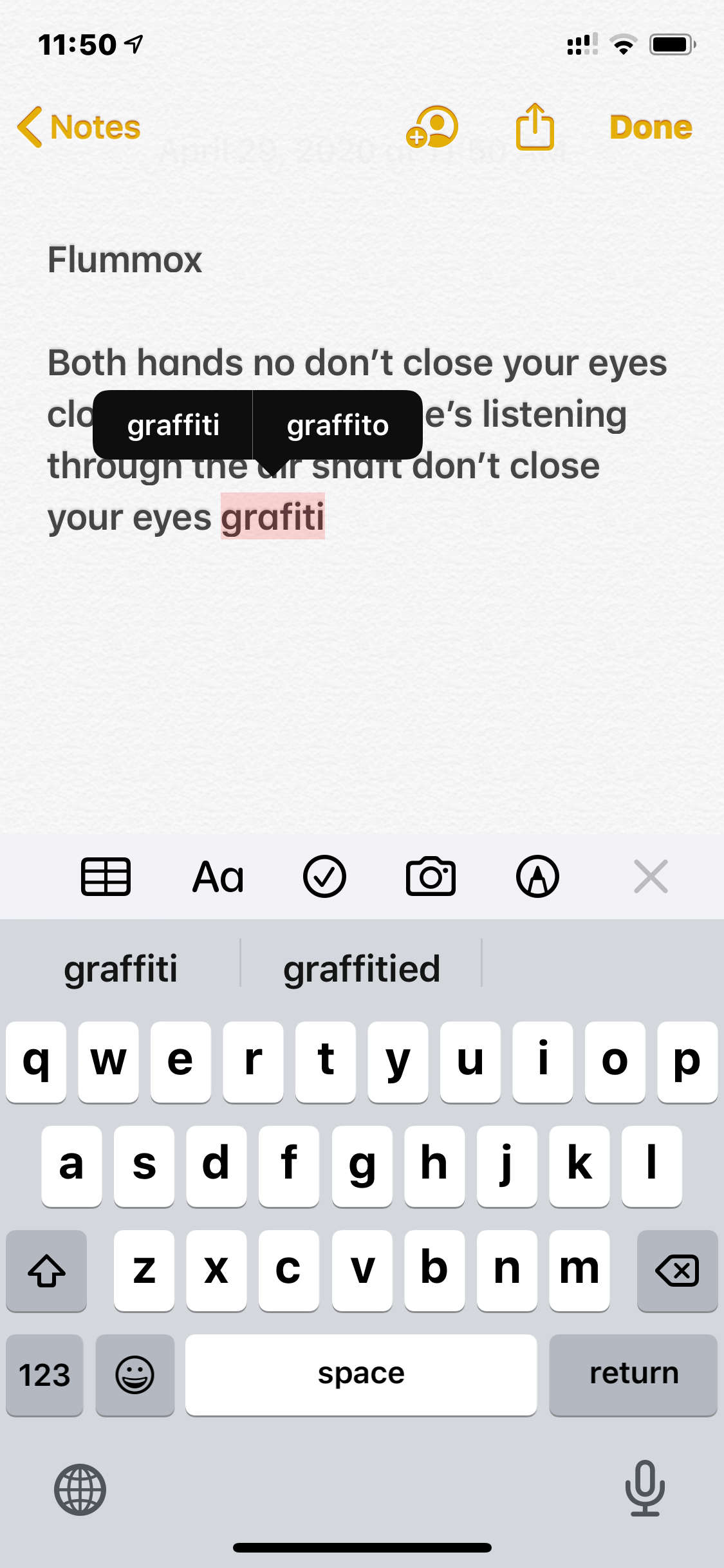 When I tap the space bar, I sometimes tap it too high and hit a letter in the row above. I’d love auto-correct to see that I’m typing real words, but intermixing c, v, and b in with them. For example: