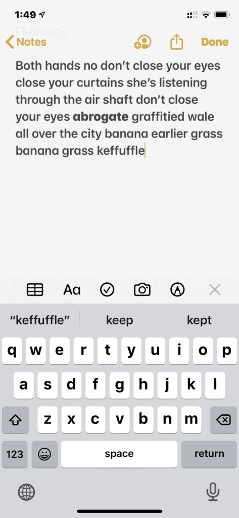 When typing fast, sometimes I type a word and a character is missing. I find that auto-correct works well when the typed word is longer, but not shorter. I go back to my “kerfuffle” example. If I type “kerfffle” which is missing the “u” it doesn’t even suggest an alternative.