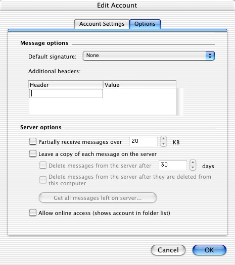 Same goes for special mailboxes — having your sent messages on a server is nice, but when you need to free up space, you need two sent messages mailboxes, one on the server and one local