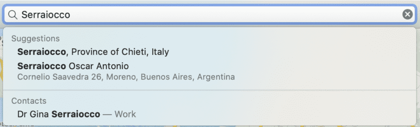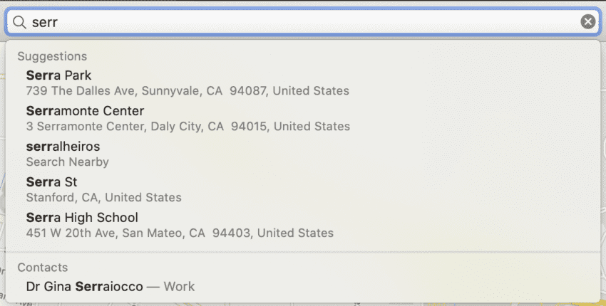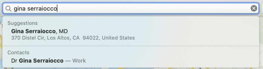 I’ll provide several examples. First up, Maps. Let’s say I want to search for my doctor in Maps. She is in my Contacts.