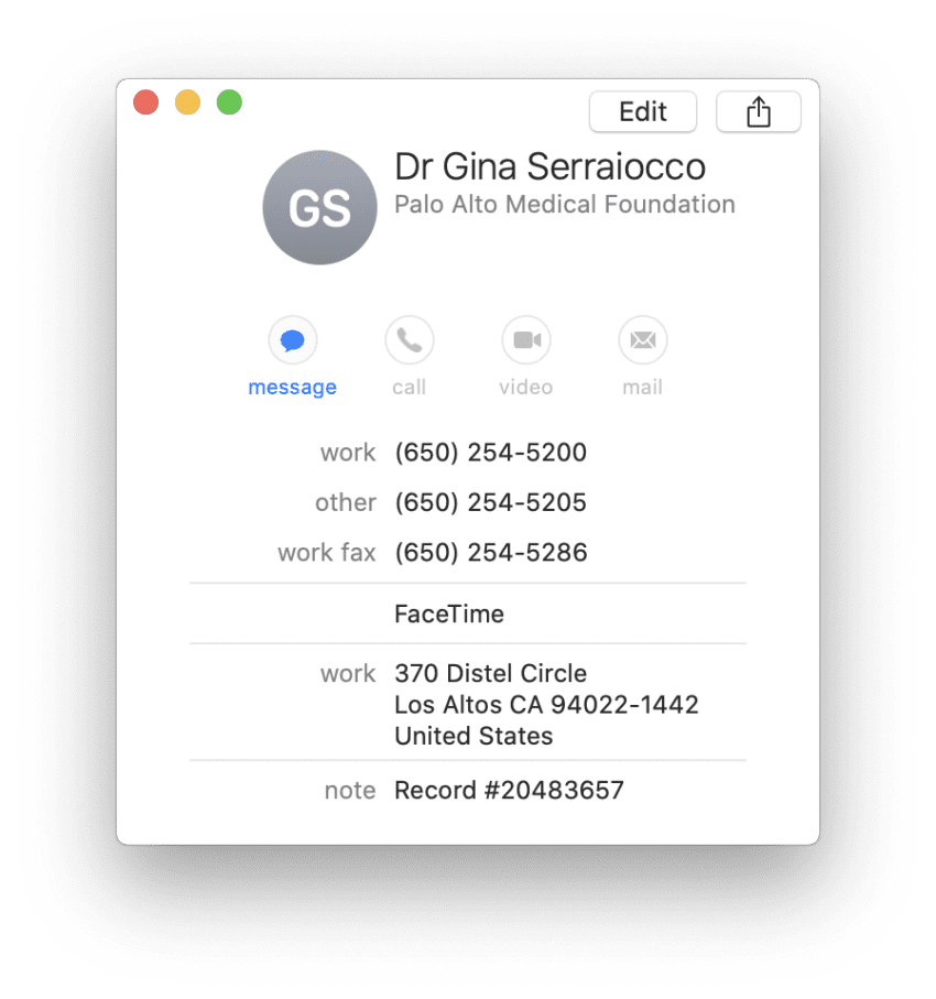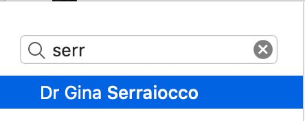 Let’s type two more letters, but this time in Contacts. Note that we have one hit, my doctor.