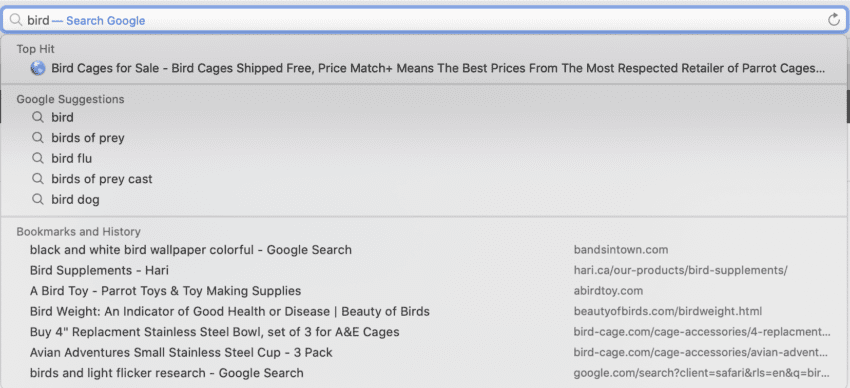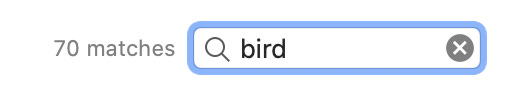 In my own case, I have this many bookmarks with the word “bird” in them: