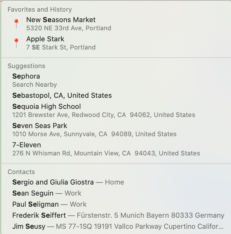 Unlike Maps, which puts my personally entered data at the bottom. Safari mixes it with history and doesn’t include all my bookmarks that match. Why should I bother bookmarking? How do I find the best pages I’ve painstakingly found?