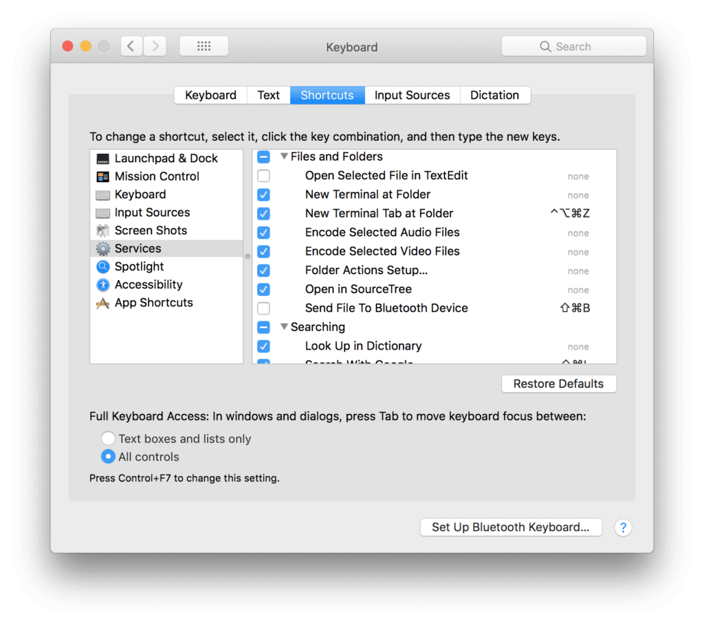 You’ll note that one of the commands has a keyboard shortcut. You can set this up in System Preferences → Keyboard → Shortcuts → Services