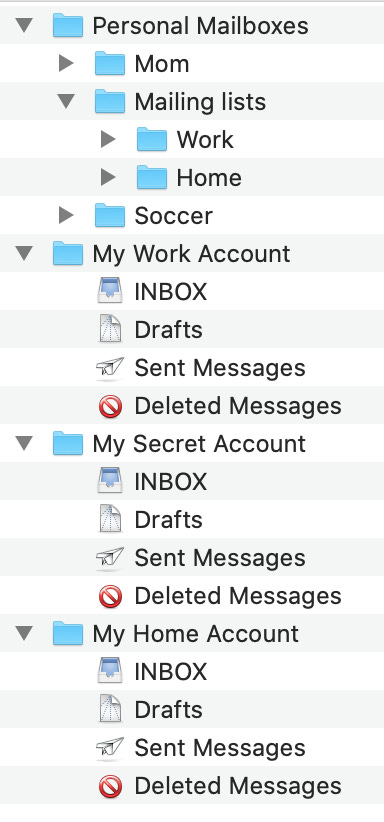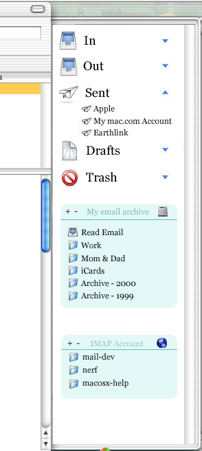 This was an attempt to handle both local and IMAP mailboxes. Interestingly, this is how Mail still does it today with the “On My Mac” and sections for the server-side mailboxes for IMAP accounts