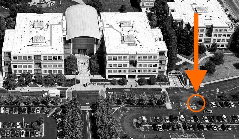This is fairly well known, but at the Infinite Loop campus, Steve Jobs used to park his car in a small lot right next to the Infinite Loop 1, often in a handicapped spot.