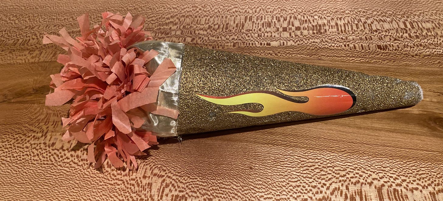 When I worked on the Mail Team, we had this gorgeous styrofoam and paper thing we called the Smart Torch. It had a realistic flame on the side made out of a sticker. Here’s what it looked like: