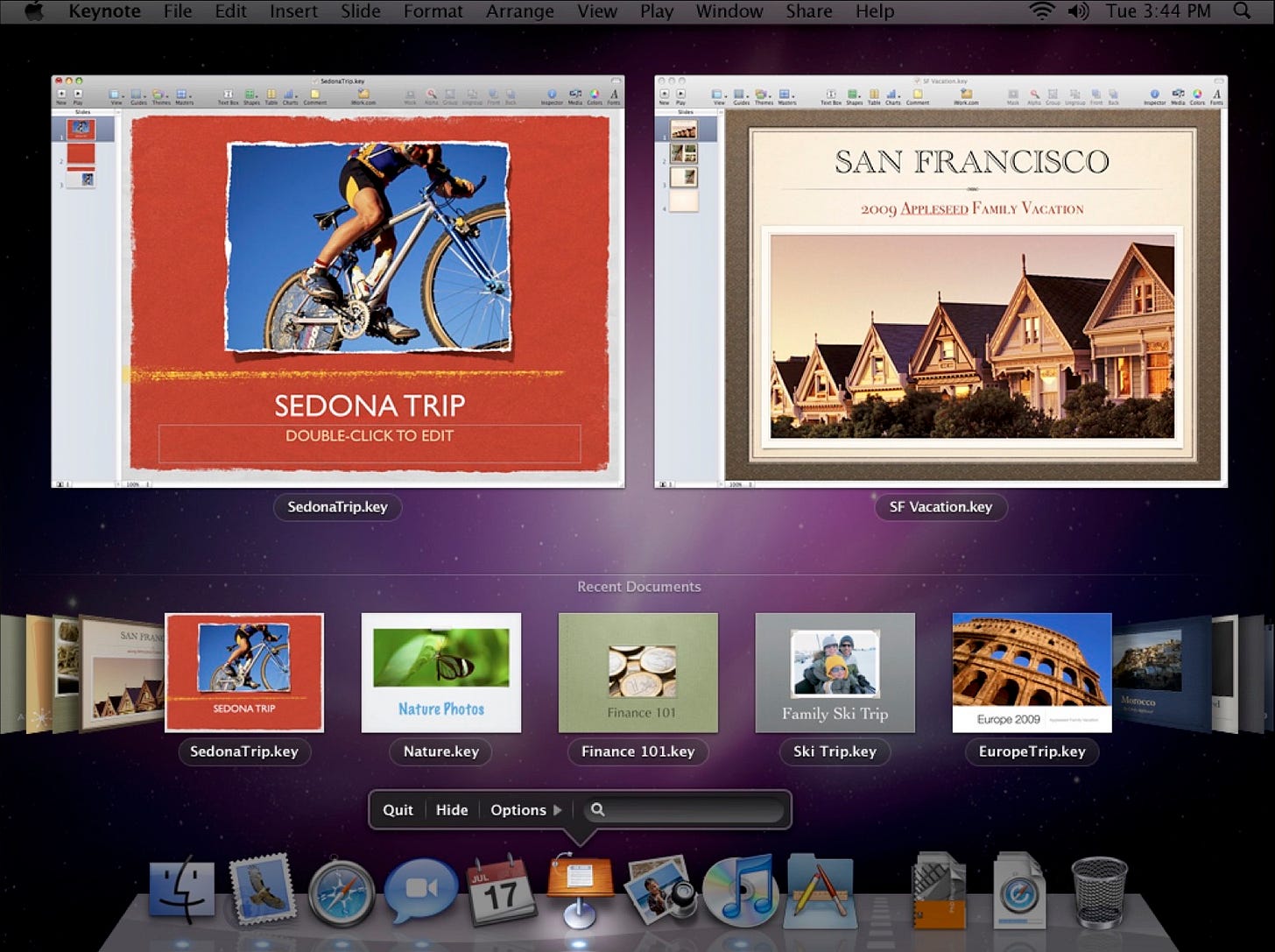 Finally, there was a token effort to look at recents and here is the only screenshot I could find. Unfortunately, it’s very small. The idea is click-and-hold on any document-based application icon would show open windows and recently opened documents.