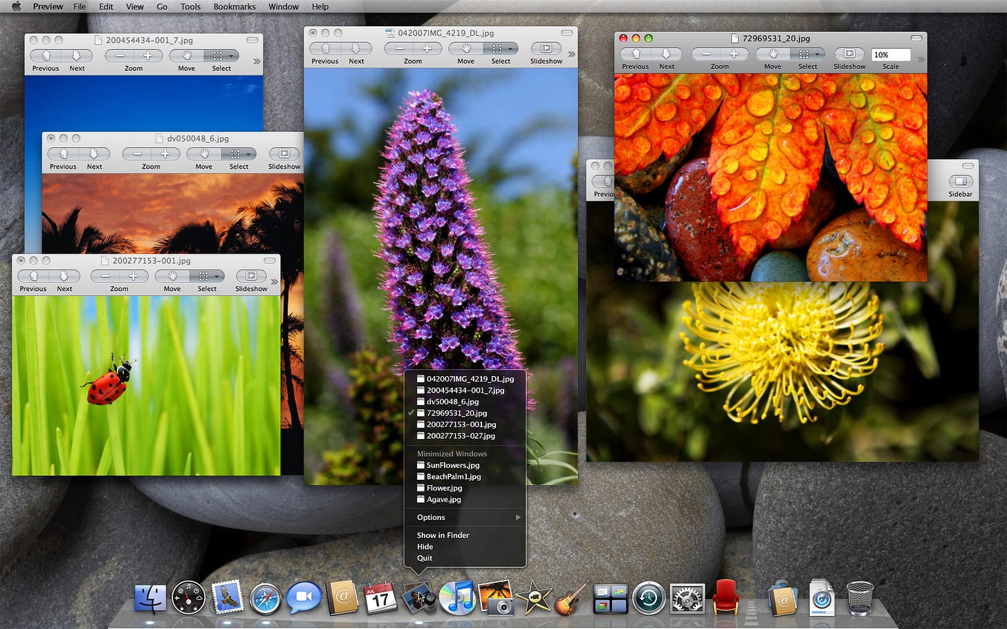 Clicking and holding on the Preview icon would display all the “open” windows. Note that this is a precursor to what would eventually become Dock stacks.